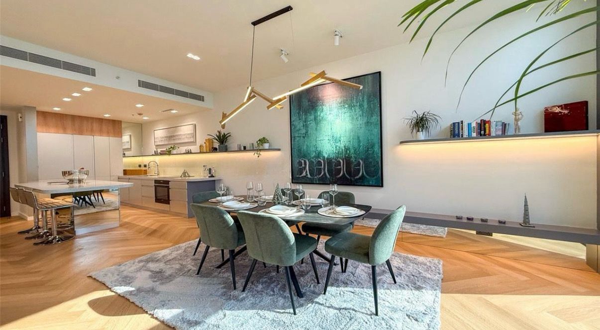 Moderne Smart-Thermostate und ein zentrales Lichtsteuerungssystem sorgen für mühelose Kontrolle von Klima und Atmosphäre. Das luxuriöse Badezimmer überzeugt mit einer maßgefertigten Waschtischlösung und großzügigem Stauraum, ergänzt durch ein stilvolles Gäste-WC. Die Bespoke-Küche ist mit integrierten deutschen Markengerätenausgestattet und bietet intelligente Stauraumlösungen für den täglichen Komfort.