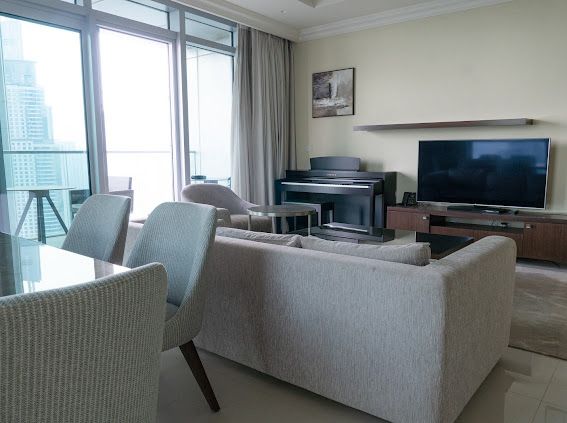 Residents enjoy world-class Address Hotel amenities — concierge, pool, gymnasium, and fine dining, all within the building.