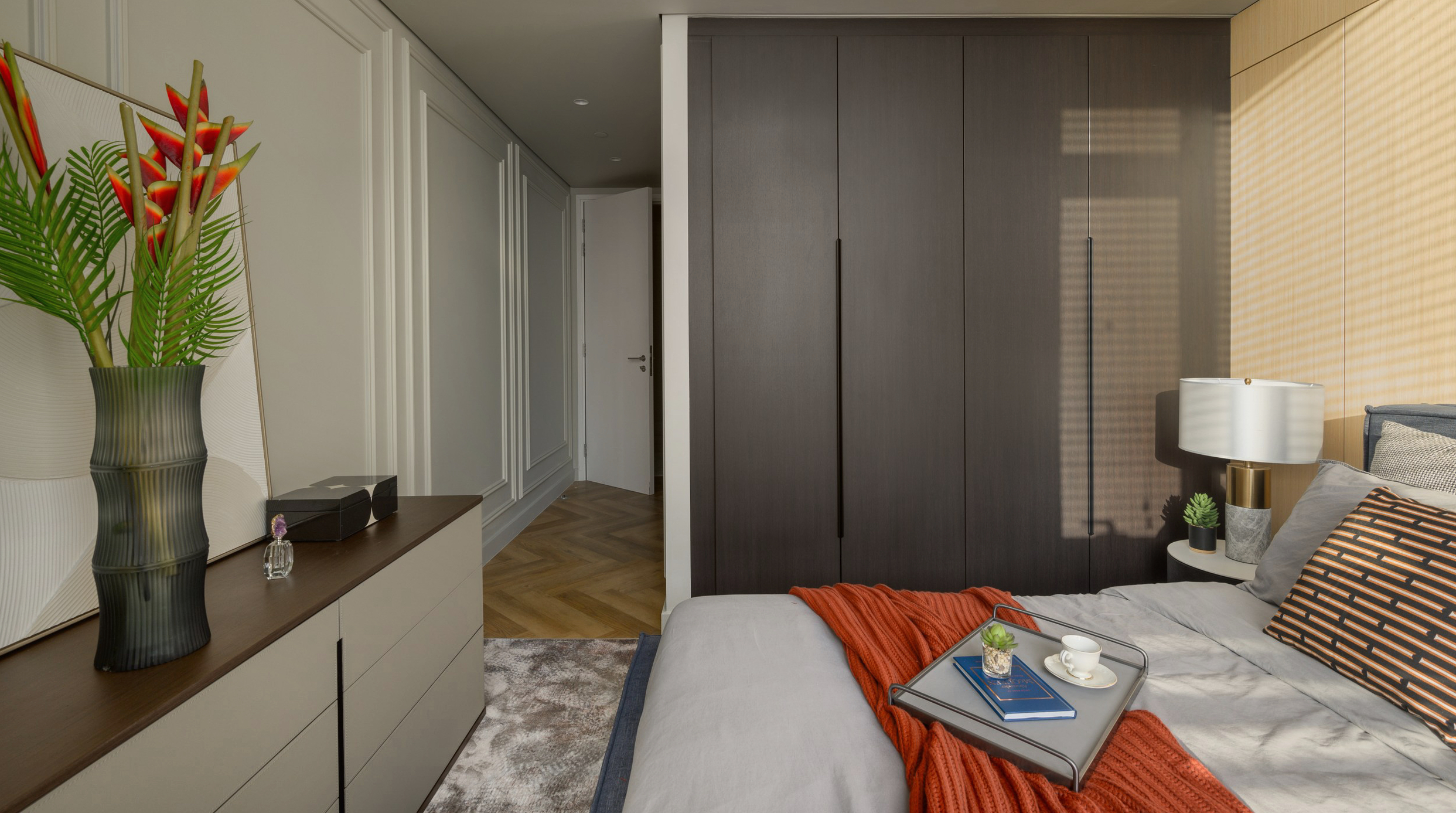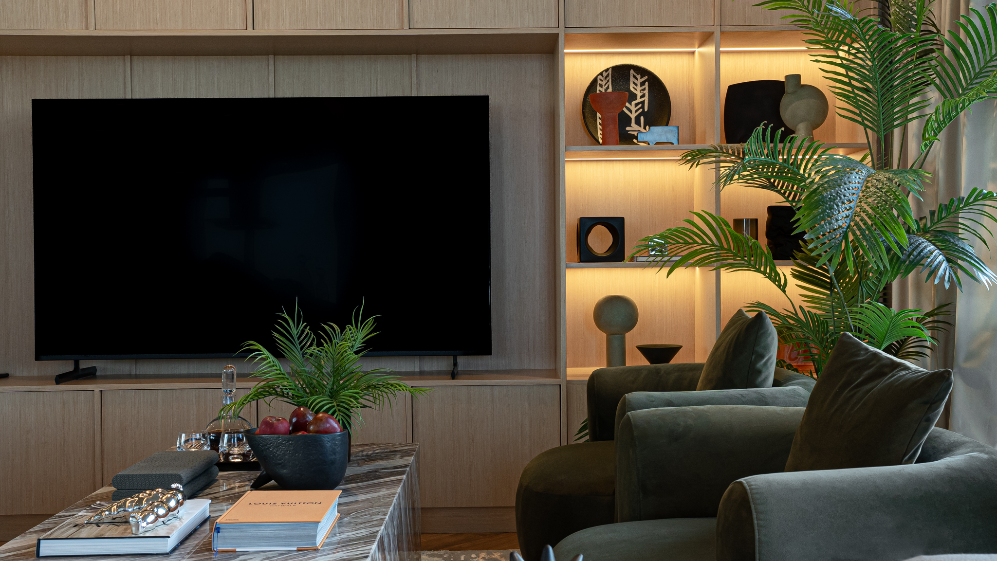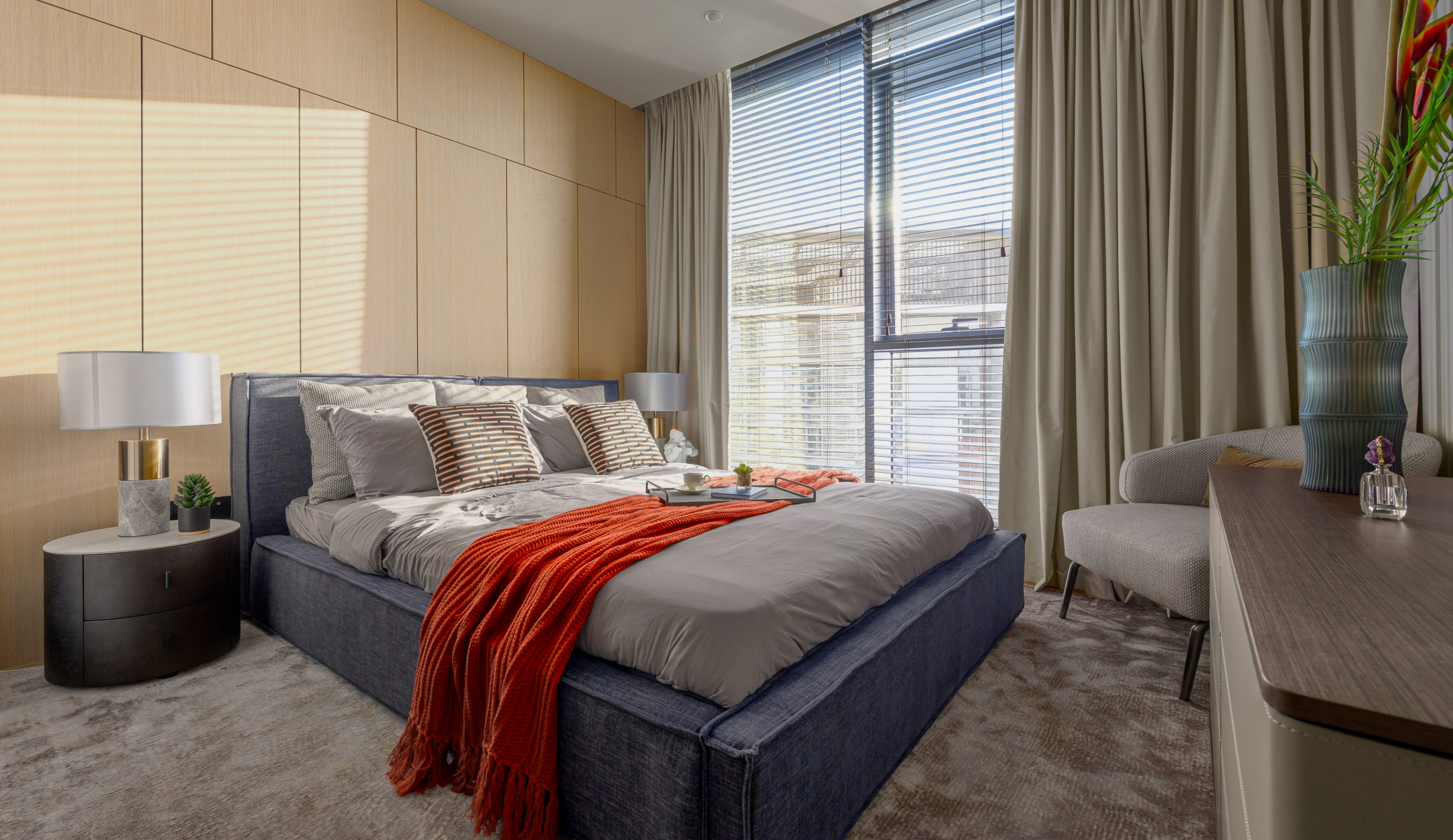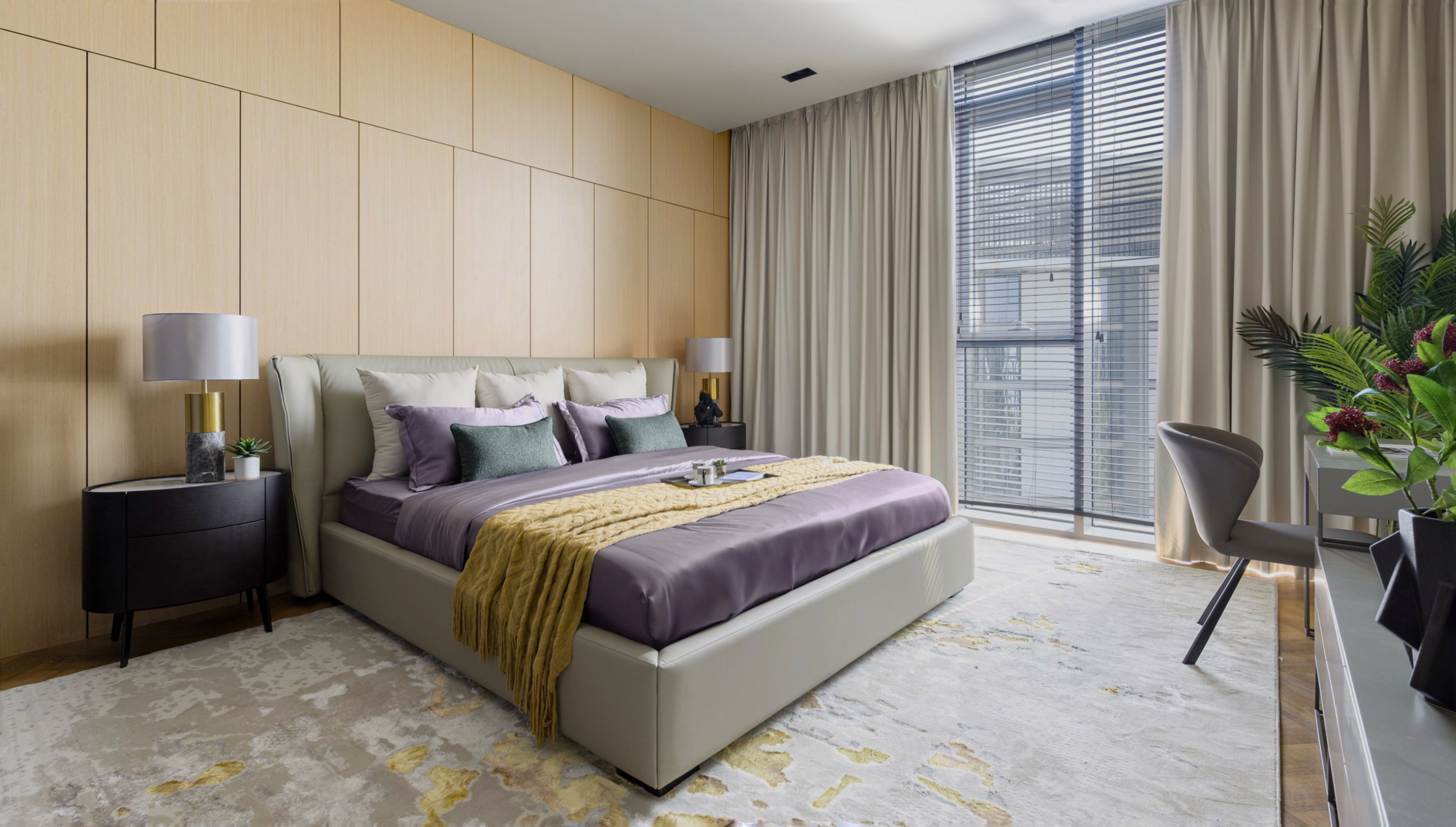 Spacious open-plan living and dining area, modern kitchen, master bedroom with en-suite, three additional bedrooms, maid’s room, multiple bathrooms, large terrace.
