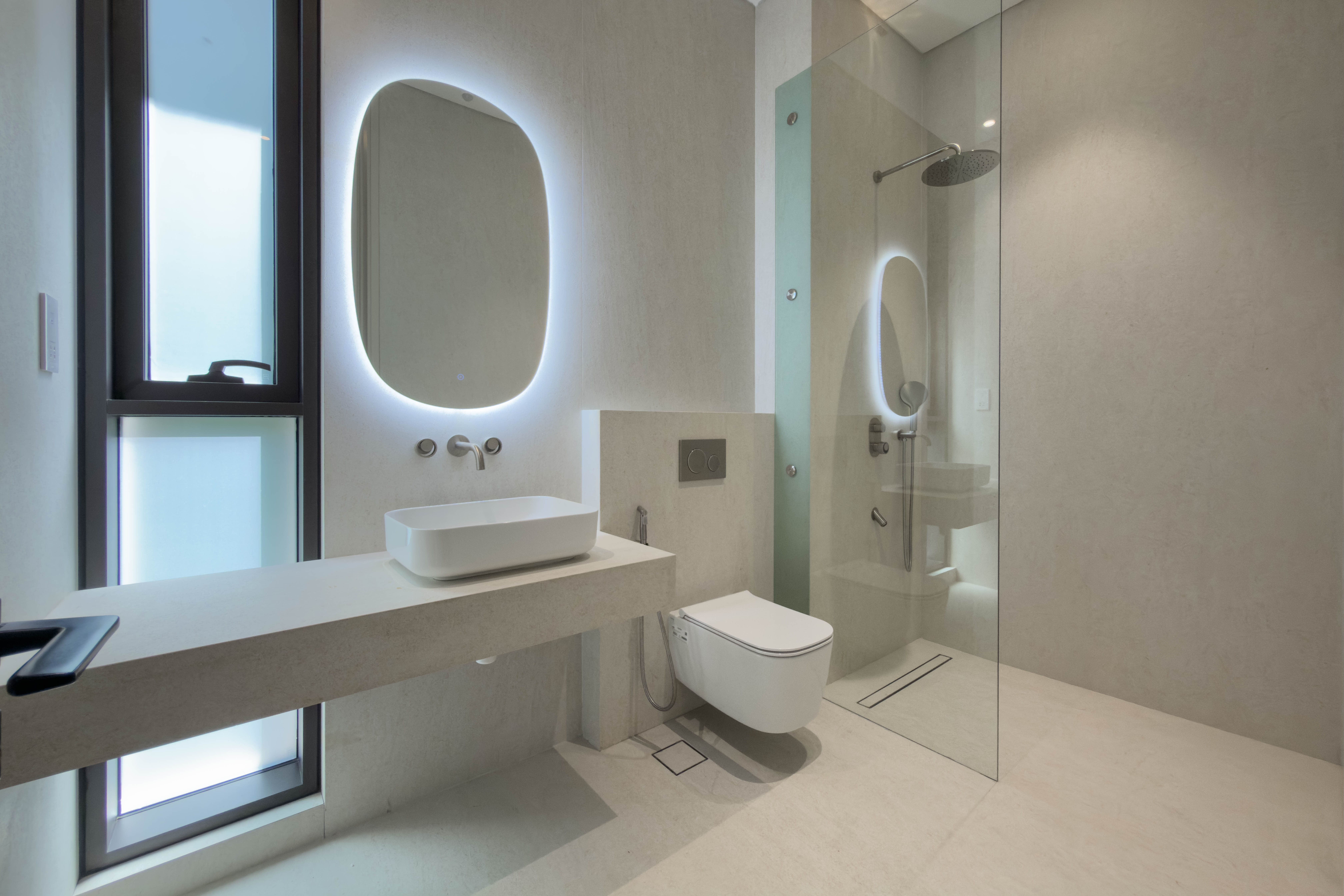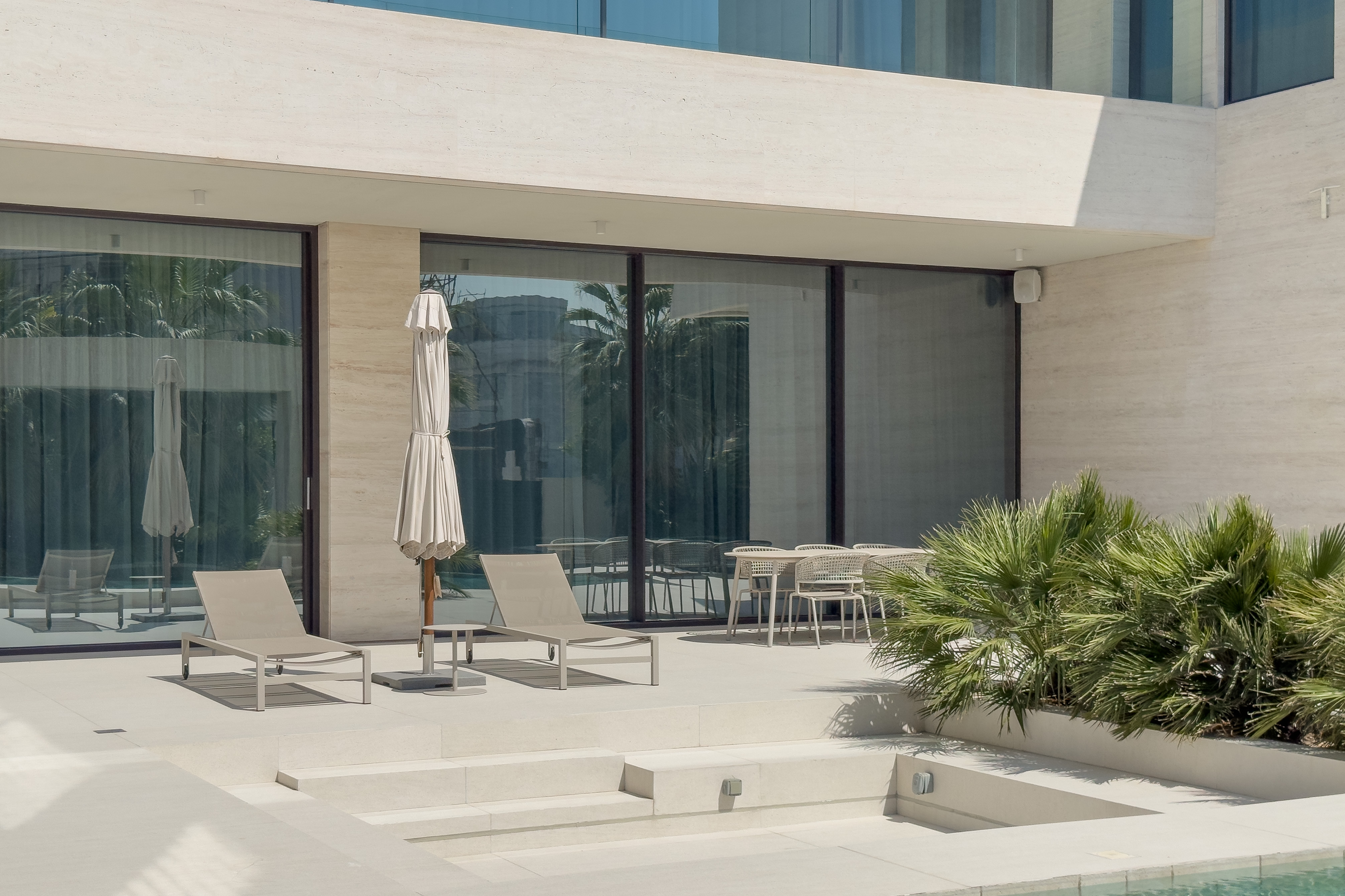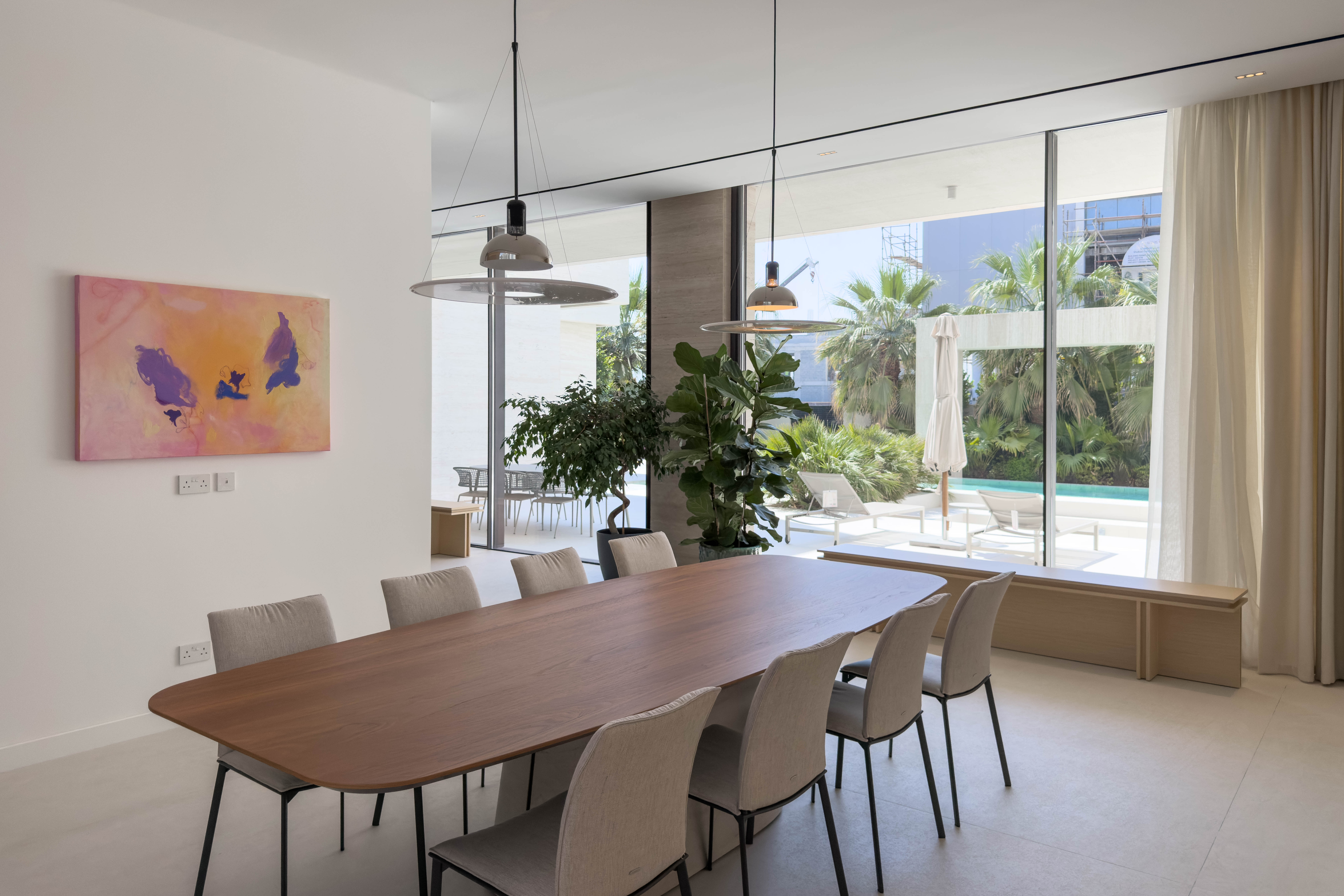 Private beach access, contemporary architecture, panoramic sea & Burj Khalifa views, spacious outdoor areas, private pool, landscaped garden, floor-to-ceiling windows, 24/7 security, premium community facilities.