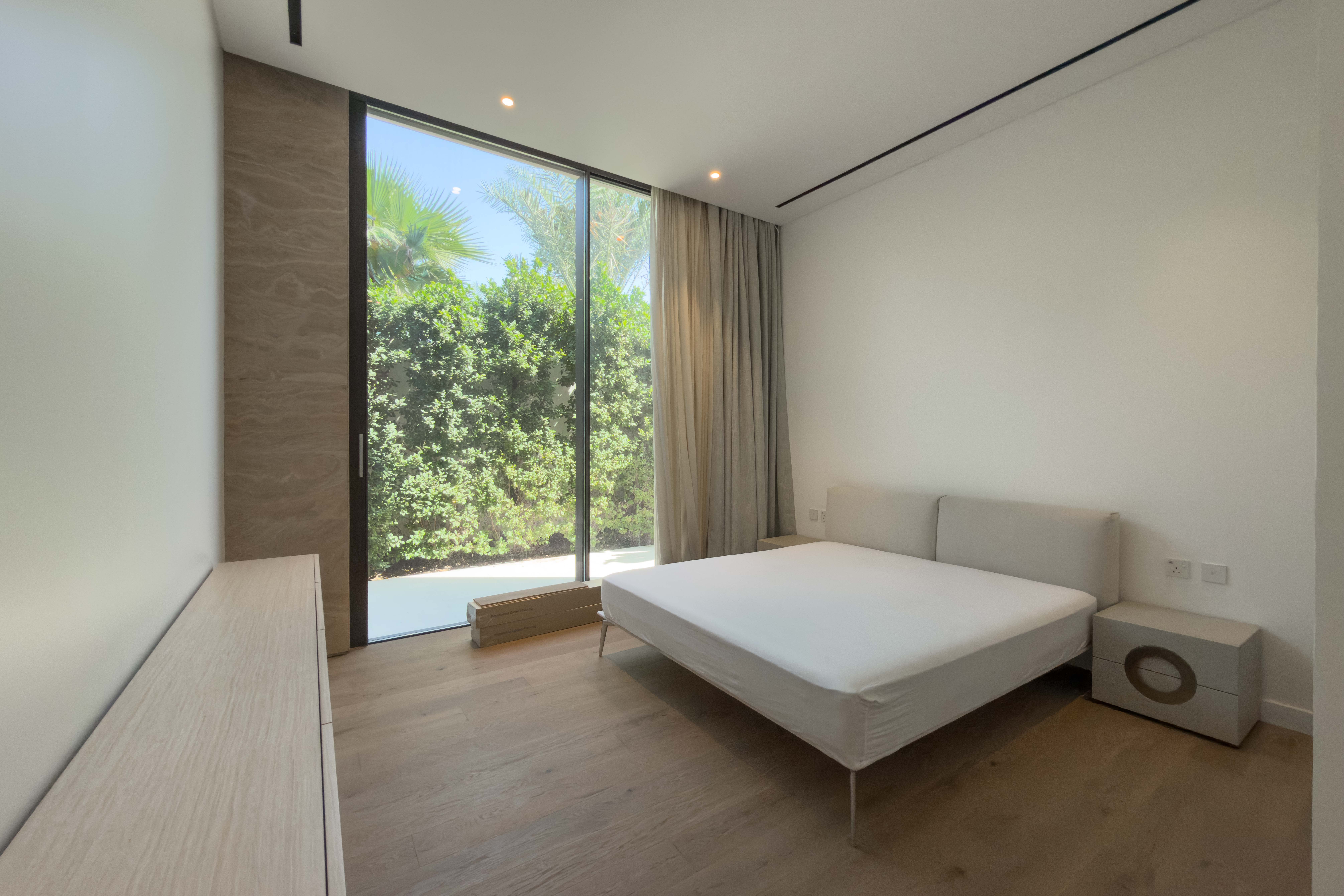 Custom-built contemporary mansion offering exceptional privacy and luxury living. The property features stunning Burj Khalifa and sea views, expansive open spaces, and premium finishes throughout. Designed for modern living, it includes large floor-to-ceiling windows and seamless indoor-outdoor flow.